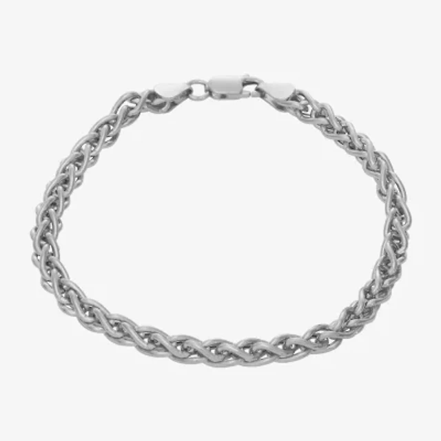 Made In Italy Mens Sterling Silver 8 1/2 Inch Hollow Wheat Chain Bracelet