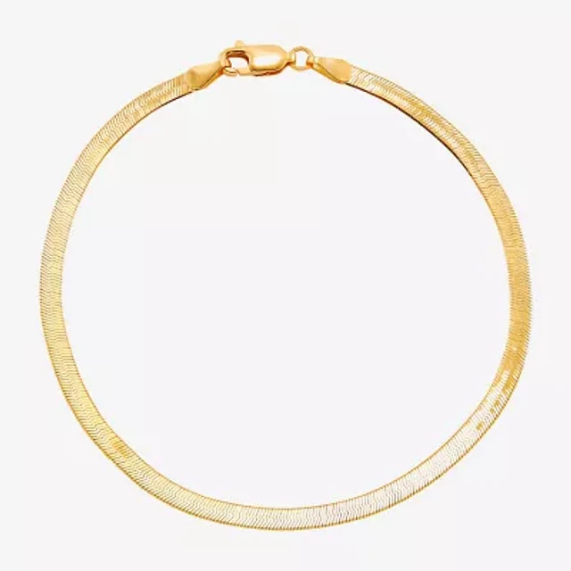 Made in Italy Womens 10K Gold 7.5 Inch Solid Herringbone Chain Bracelet