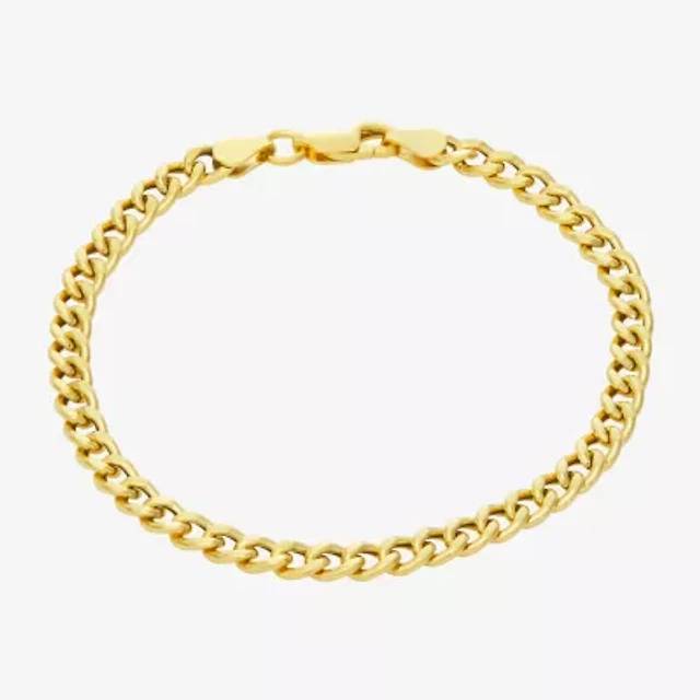 Made In Italy Mens 14K Gold Over Silver 8 Inch Hollow Cuban Chain Bracelet