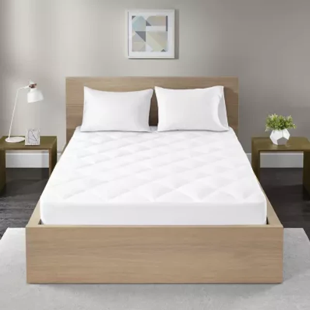 Madison Park Quiet Nights 100% Cotton Sateen Waterproof Diamond Quilting Down Alternative Mattress Pad