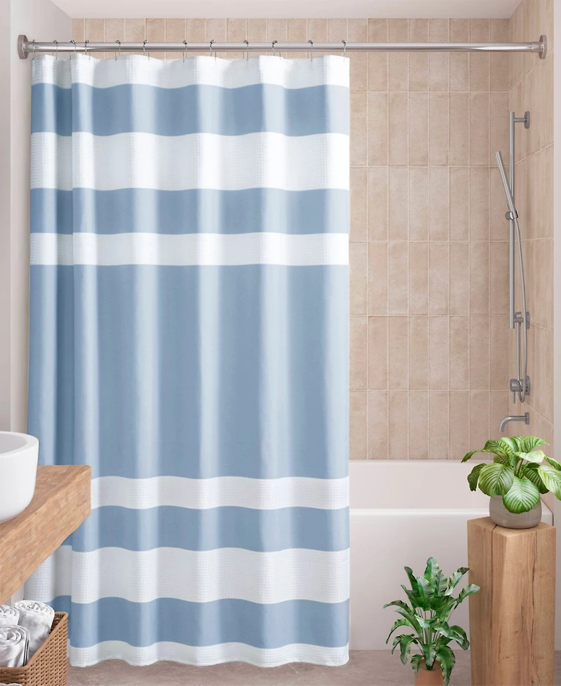 Update your space with the Madison Park Spa Waffle Shower Curtain with 3M Treatment. Several alternative colors pieced with a white waffle weave manipulation makes you feel like you're in the spa, while the 3M water repellent treatment keeps your curtain looking newer, longer. Various sizes are available to fit any bathroom space.