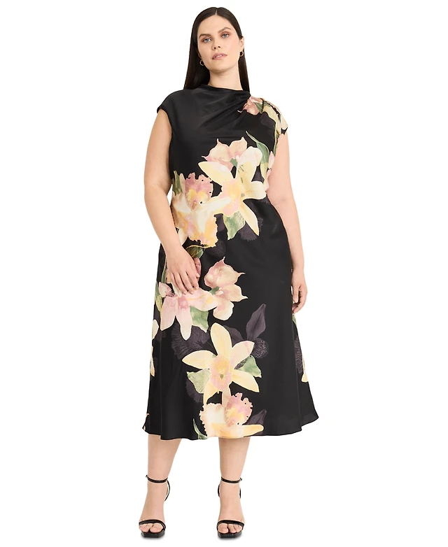Maggy London Plus Size Printed Asymmetrical Midi Dress