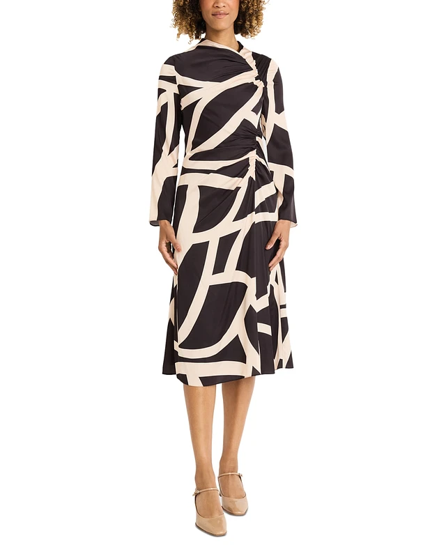 Maggy London Women's Printed Long-Sleeve Pleated Dress