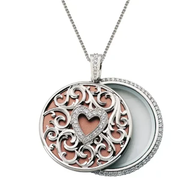 Magnifying Womens 2 3/4 CT. T.W. Cubic Zirconia Pure Silver Over Brass Heart 38 Inch Pendant Necklace