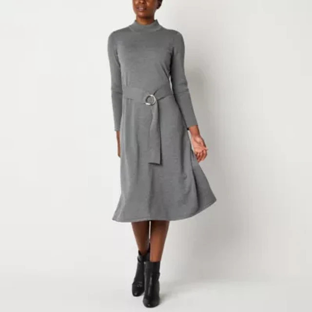 Jessica Howard Women's Long Sleeve Mock Neck Belted Midi Sweater Dress