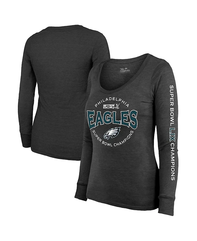 Majestic Women's Black Philadelphia Eagles Super Bowl Lix Champions Highlight Tri-Blend Scoop Neck Long Sleeve T-Shirt