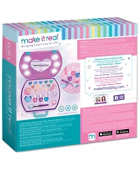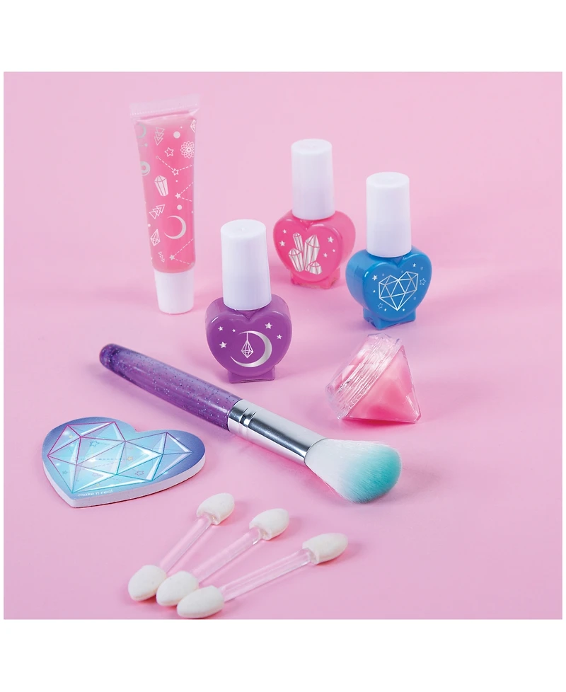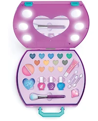 This Light Up Cosmetic Studio is an all-in-one beauty set that features an illuminated mirror and all the fun dress-up cosmetics needed to create bright, picture-perfect manis and matching makeup looks. The set comes packed in a glam heart-shaped case.
