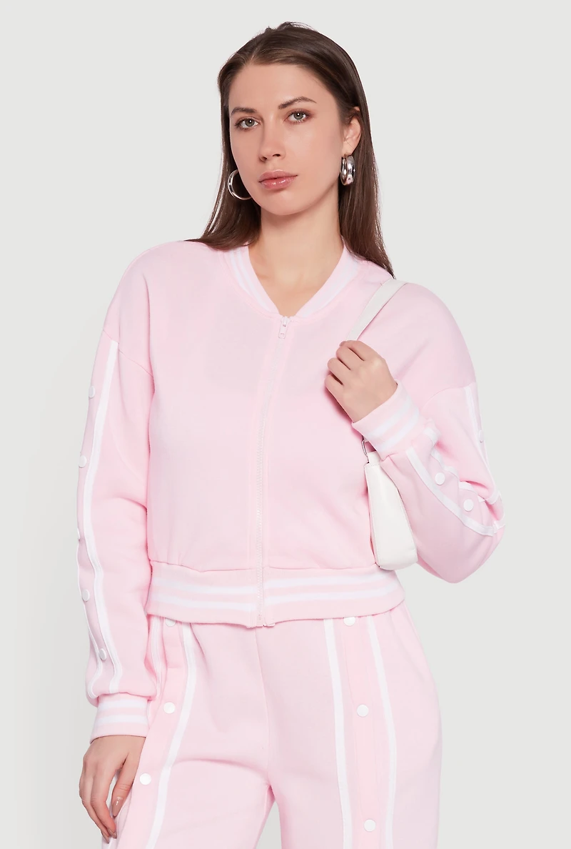 Mandarin Collar Varsity Stripe Zip Front Sweatshirt
