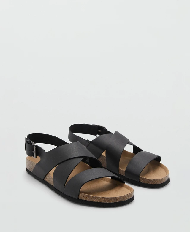 Mango Men's Crossed Leather Buckle Sandals