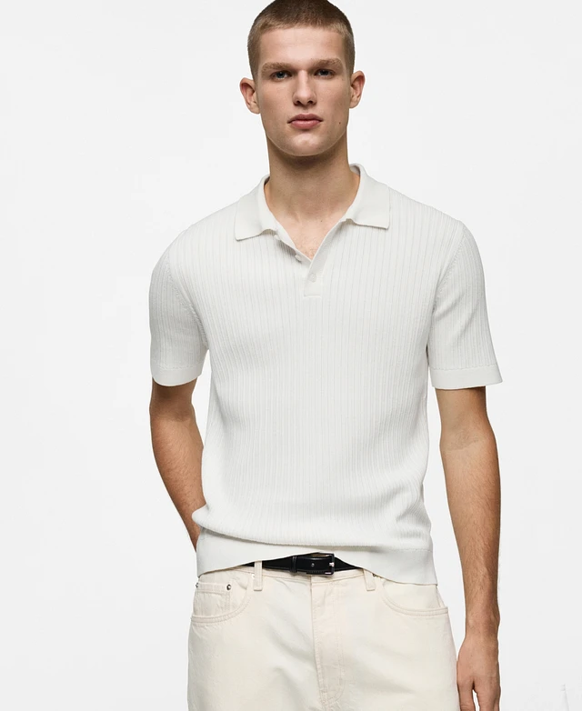 Mango Men's Fine-Knit Ribbed Cotton Polo Shirt