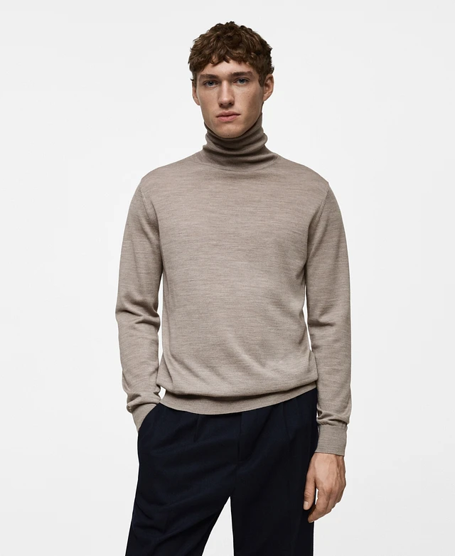 Mango Men's Fine-Knit Wool Turtleneck Sweater