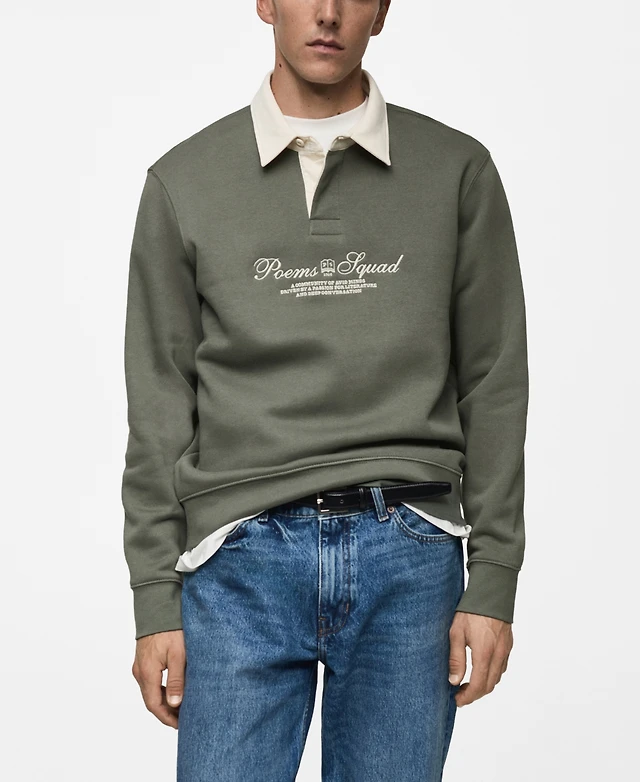 Mango Men's Regular-Fit Cotton Polo Sweatshirt
