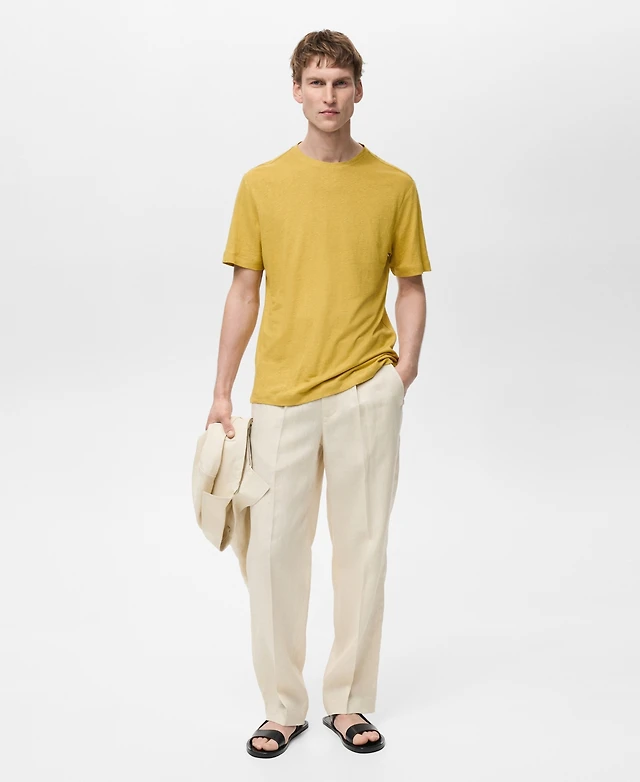 Mango Men's Short Sleeve Linen-Blend Shirt
