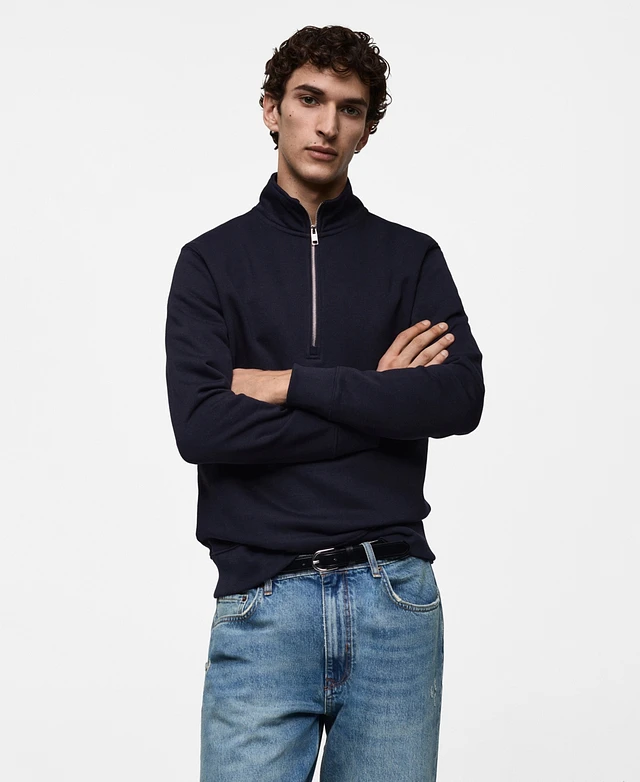 Mango Men's Zipped High Collar Sweater