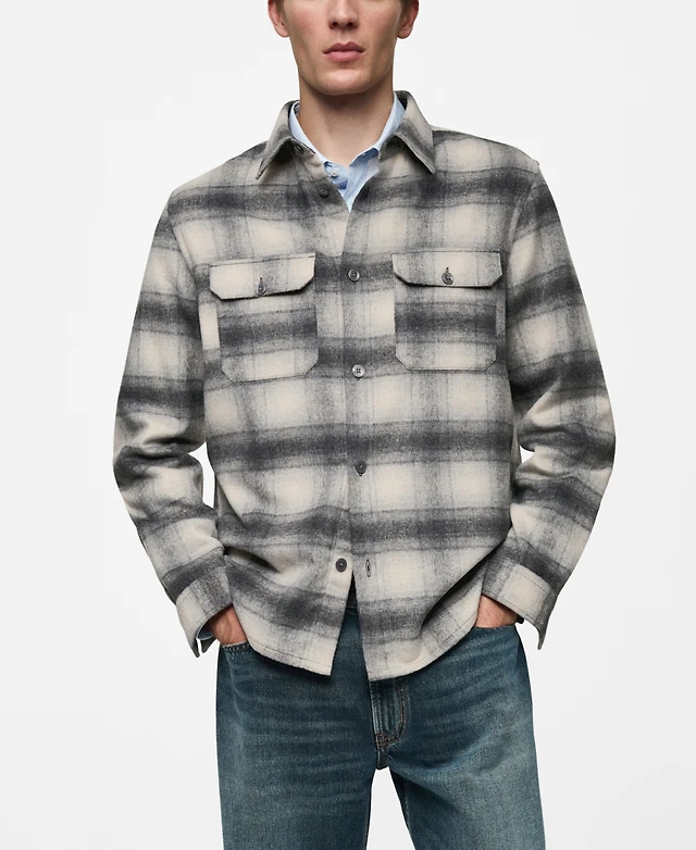Mango Men's Pockets Detail Plaid Wool Overshirt