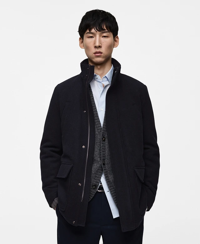 Mango Men's Water-Repellent Quilted Hooded Coat