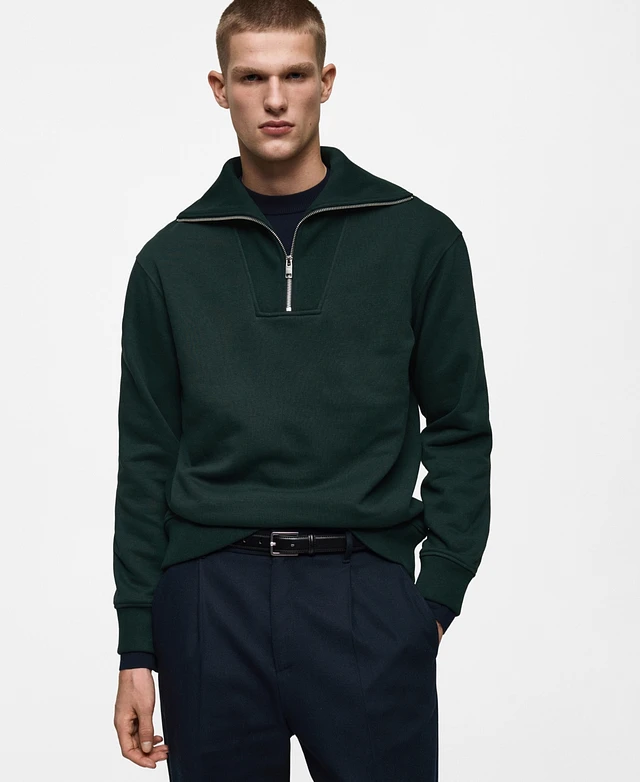 Mango Men's Funnel-Neck Quarter-Zip Sweatshirt