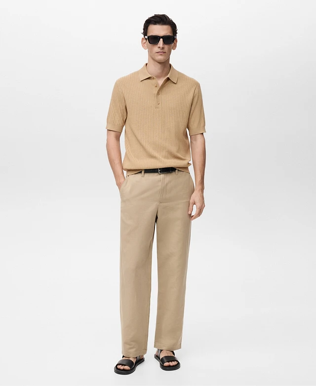 Mango Men's Rib-Knit Cotton-Blend Polo Shirt