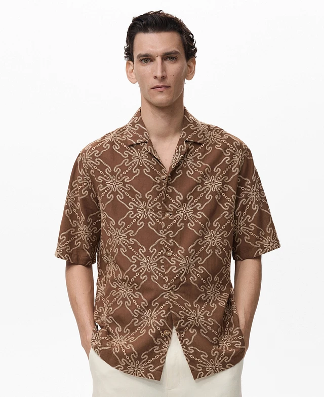 Mango Men's Short-Sleeved Embroidered Shirt