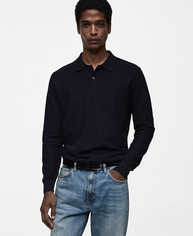 Mango Men's Slim-Fit Micro-Structured Knit Polo Shirt