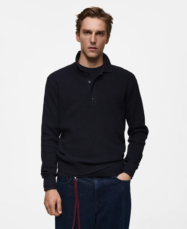 Mango Men's Slim-Fit Rib-Knit Polo Sweater