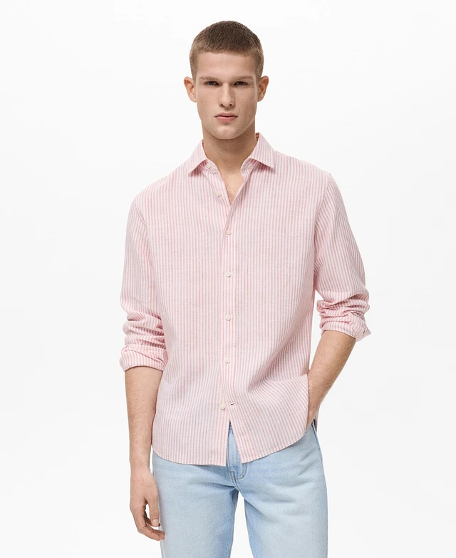Mango Men's Regular-Fit Striped Cotton-Linen Shirt