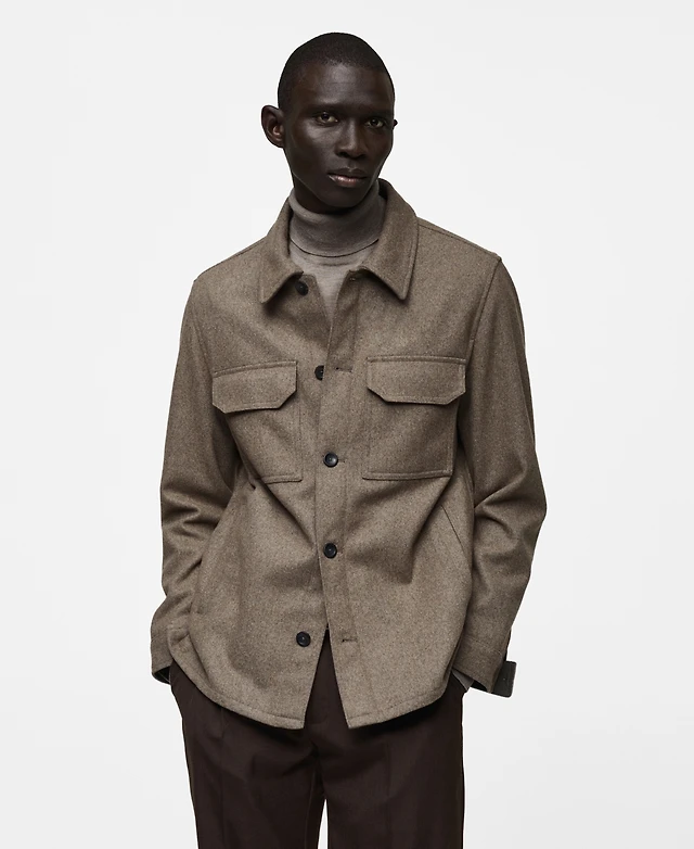 Mango Men's Wool-Blend Flannel Overshirt