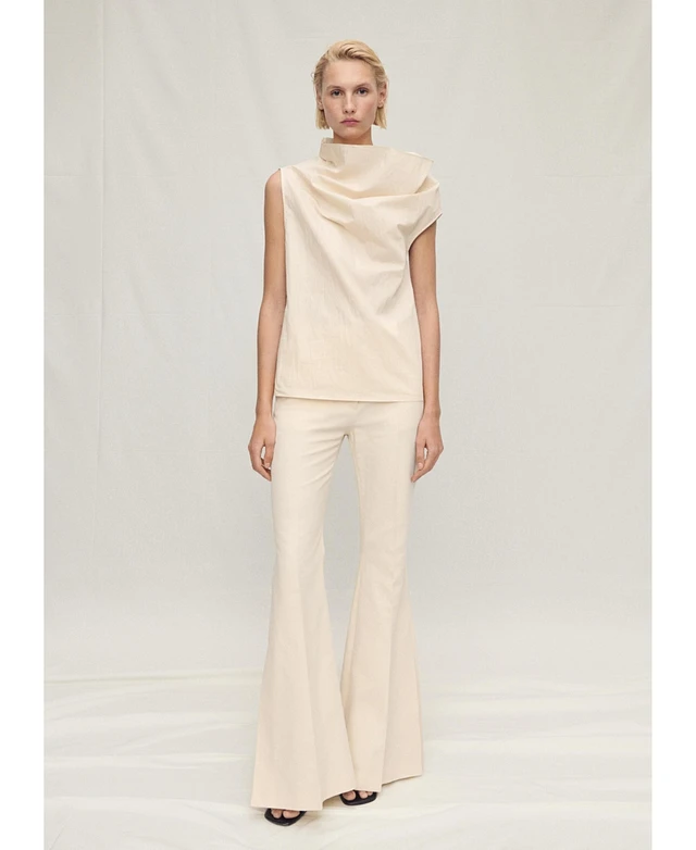 Mango Women's Asymmetrical Neckline Silk Blouse
