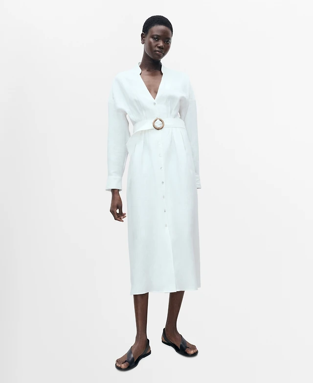 Mango Women's Belt Linen Shirt Dress