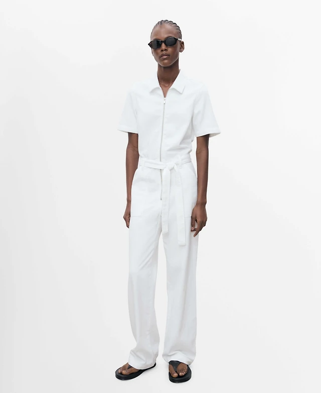 Mango Women's Straight-Fit Short-Sleeved Jumpsuit