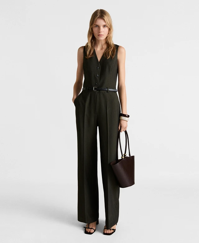 Mango Women's Belted Pinstripe Jumpsuit