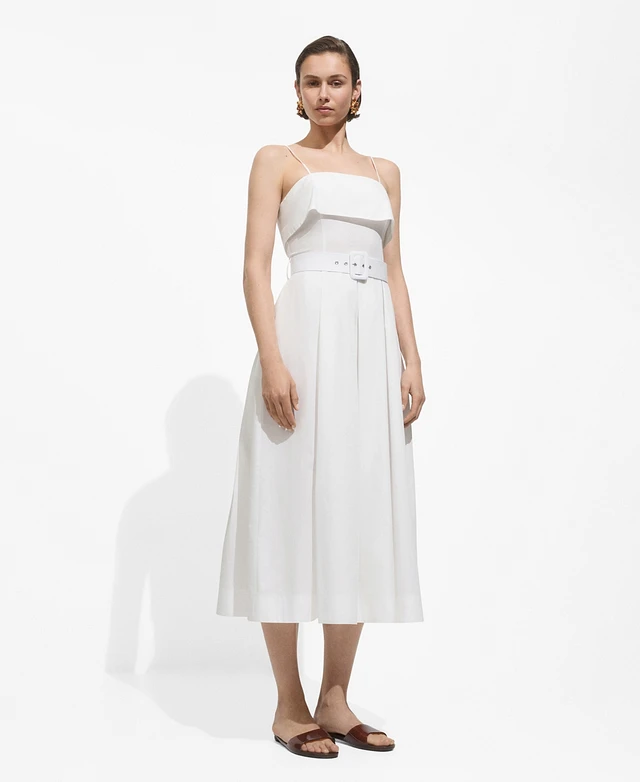 Mango Women's Belted Square Neckline Dress