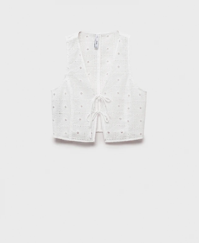 Mango Women's Bows Detail Embroidered Cotton Vest