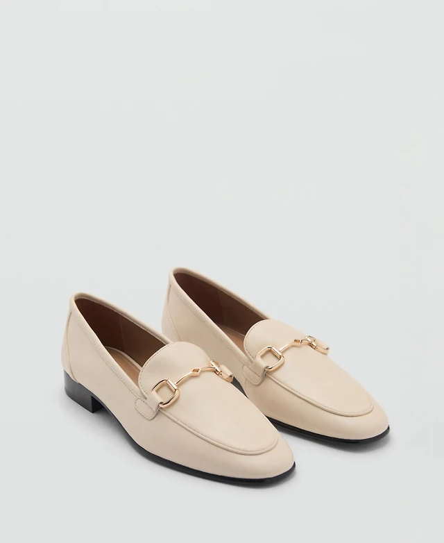 Mango Women's Strap Buckle Embroidered Ballerinas Shoes