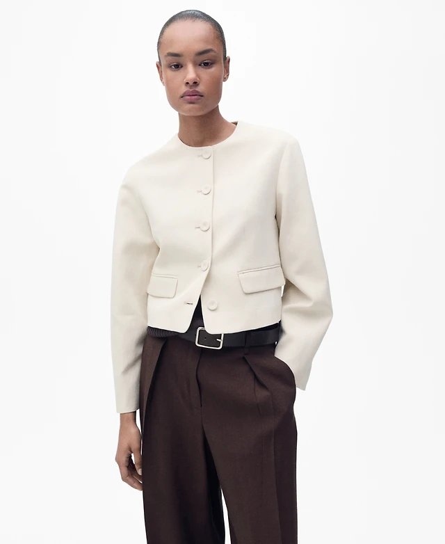 Mango Women's Buttoned Linen-Blend Jacket