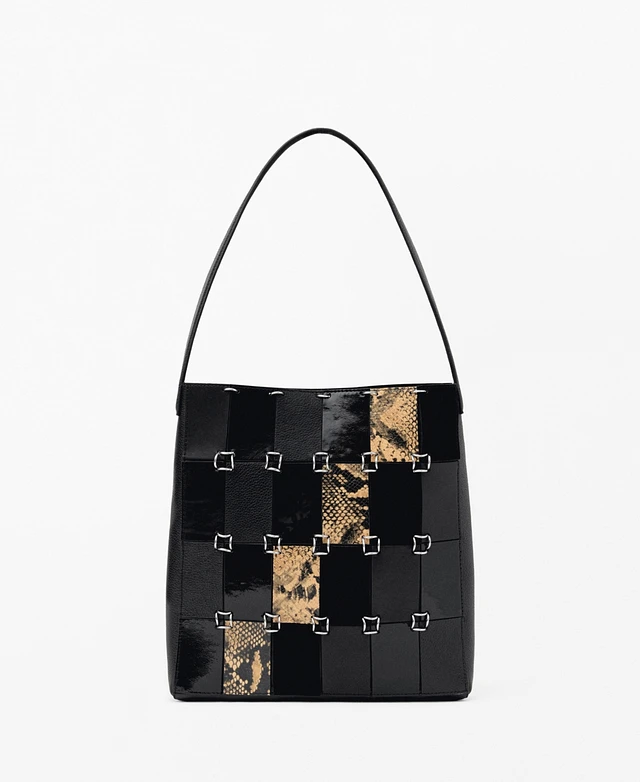 Mango Women's Gathered Pockets Leather Shoulder Bag
