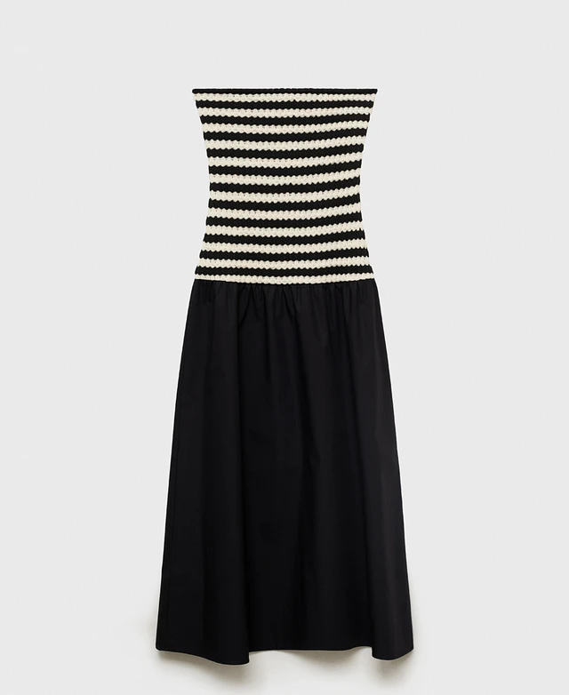 Mango Women's Combined Striped Strapless Dress