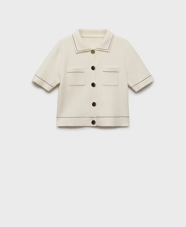 Mango Women's Contrast Trim Crop Cardigan Sweater