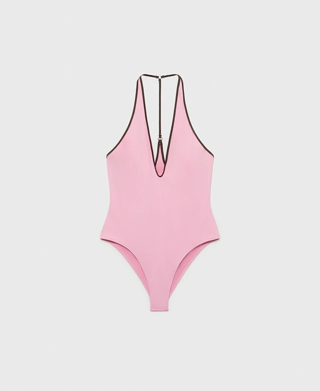 Mango Women's Contrast Trim V-Neck Swimsuit