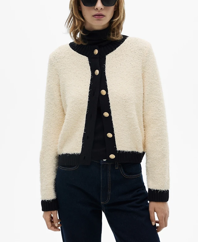 Mango Women's Contrast Trim Crop Cardigan Sweater