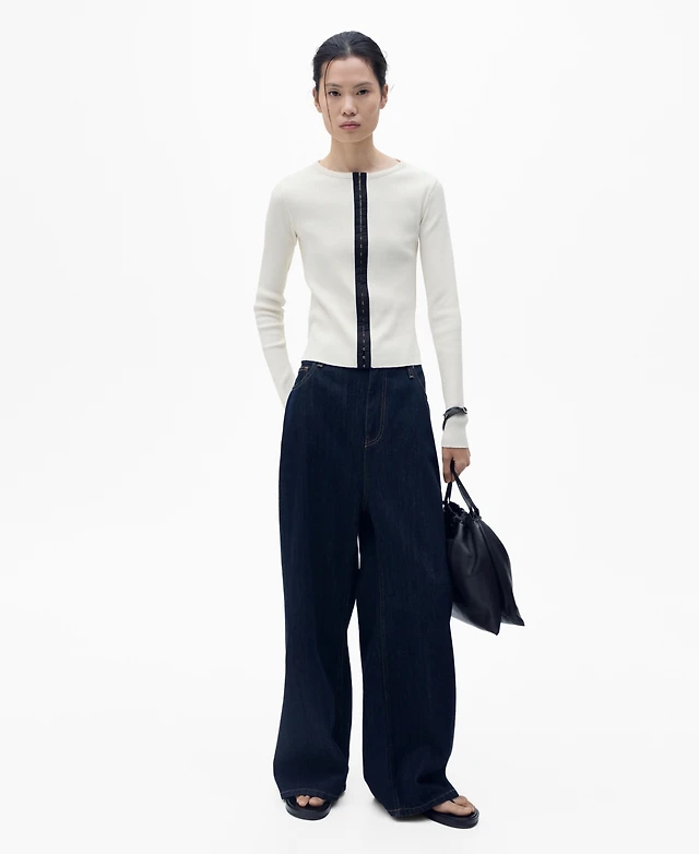 Mango Women's Contrasting Closure Cotton Cardigan