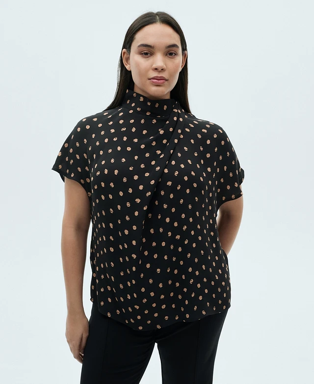 Mango Women's Draped Collar Polka Dot Blouse Top