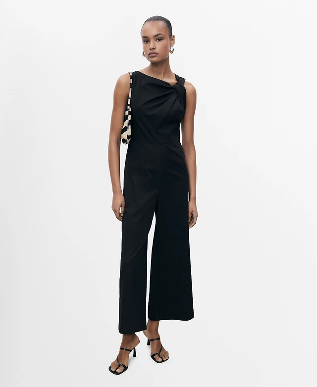 Mango Women's Draped Neck Long Culotte Jumpsuit