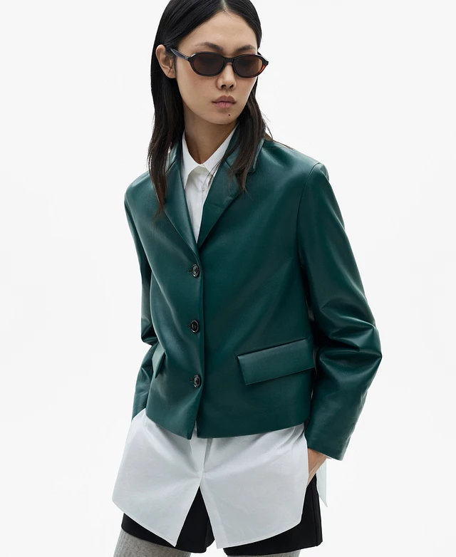 Mango Women's Flap Pockets and Leather Effect Jacket