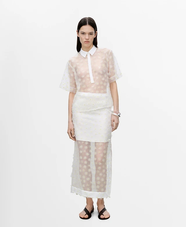 Mango Women's Floral Embroidered Semi-Transparent Shirt