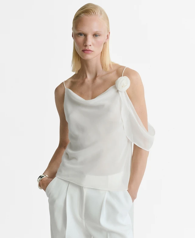 Mango Women's Flower Detail Draped Top