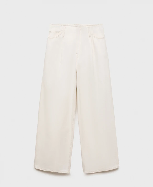 Mango Women's Frayed Waist Wide Leg Denim Jeans