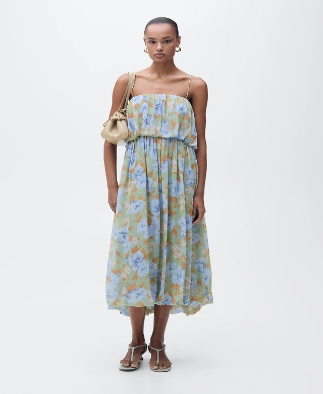 Mango Women's Gathered Waist Floral-Print Dress