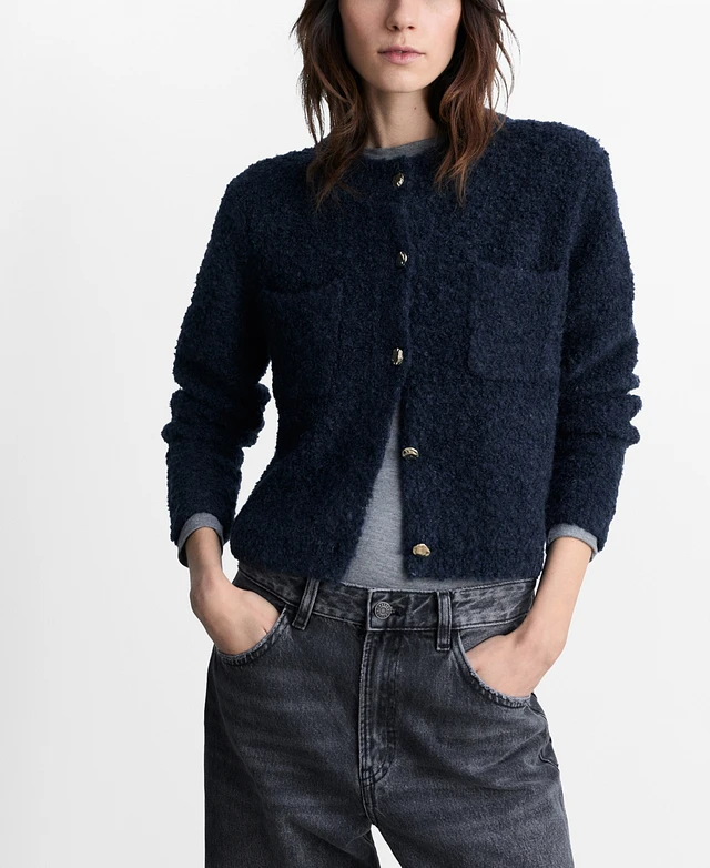 Mango Women's Jewel Buttons Detail Boucle Knit Sweater
