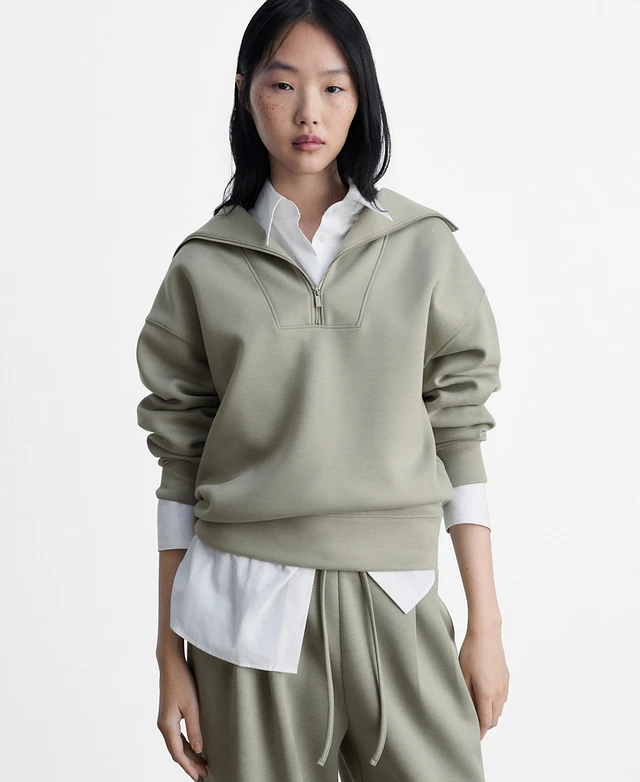 Mango Women's Zipper Detail Turtleneck Sweatshirt